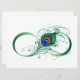The symbol of infinity with a bright, green, artistic peacock feather on a white background. Tattoo style.