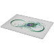 The symbol of infinity with a bright, green, artistic peacock feather on a white background. Tattoo style.