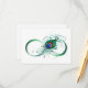 The symbol of infinity with a bright, green, artistic peacock feather on a white background. Tattoo style.