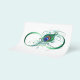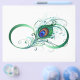 The symbol of infinity with a bright, green, artistic peacock feather on a white background. Tattoo style.