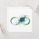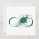 The symbol of infinity with a bright, green, artistic peacock feather on a white background. Tattoo style.