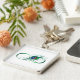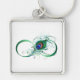 The symbol of infinity with a bright, green, artistic peacock feather on a white background. Tattoo style.