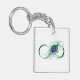 The symbol of infinity with a bright, green, artistic peacock feather on a white background. Tattoo style.