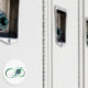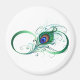 The symbol of infinity with a bright, green, artistic peacock feather on a white background. Tattoo style.