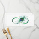 The symbol of infinity with a bright, green, artistic peacock feather on a white background. Tattoo style.