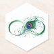 The symbol of infinity with a bright, green, artistic peacock feather on a white background. Tattoo style.