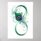 The symbol of infinity with a bright, green, artistic peacock feather on a white background. Tattoo style.