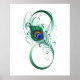 The symbol of infinity with a bright, green, artistic peacock feather on a white background. Tattoo style.