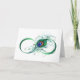 The symbol of infinity with a bright, green, artistic peacock feather on a white background. Tattoo style.
