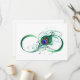 The symbol of infinity with a bright, green, artistic peacock feather on a white background. Tattoo style.