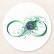 Infinity Symbol with Peacock Feather Round Paper Coaster