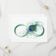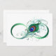 The symbol of infinity with a bright, green, artistic peacock feather on a white background. Tattoo style.