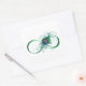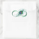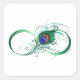 The symbol of infinity with a bright, green, artistic peacock feather on a white background. Tattoo style.