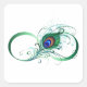 The symbol of infinity with a bright, green, artistic peacock feather on a white background. Tattoo style.