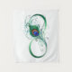 The symbol of infinity with a bright, green, artistic peacock feather on a white background. Tattoo style.