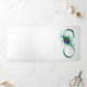 The symbol of infinity with a bright, green, artistic peacock feather on a white background. Tattoo style.