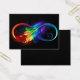 Artistically drawn infinity symbol with beautiful rainbow feather on white background. Tattoo style.