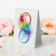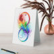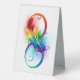 Artistically drawn infinity symbol with beautiful rainbow feather on white background. Tattoo style.