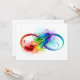 Artistically drawn infinity symbol with beautiful rainbow feather on white background. Tattoo style.