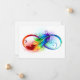 Artistically drawn infinity symbol with beautiful rainbow feather on white background. Tattoo style.
