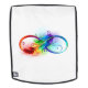 Artistically drawn infinity symbol with beautiful rainbow feather on white background. Tattoo style.