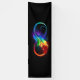 Artistically drawn infinity symbol with beautiful rainbow feather on white background. Tattoo style.