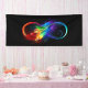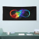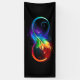 Artistically drawn infinity symbol with beautiful rainbow feather on white background. Tattoo style.
