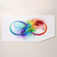 Artistically drawn infinity symbol with beautiful rainbow feather on white background. Tattoo style.