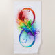 Artistically drawn infinity symbol with beautiful rainbow feather on white background. Tattoo style.