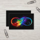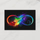 Artistically drawn infinity symbol with beautiful rainbow feather on white background. Tattoo style.