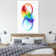 Artistically drawn infinity symbol with beautiful rainbow feather on white background. Tattoo style.