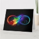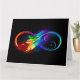 Artistically drawn infinity symbol with beautiful rainbow feather on white background. Tattoo style.