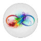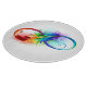 Artistically drawn infinity symbol with beautiful rainbow feather on white background. Tattoo style.