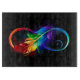 Artistically drawn infinity symbol with beautiful rainbow feather on white background. Tattoo style.