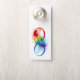 Artistically drawn infinity symbol with beautiful rainbow feather on white background. Tattoo style.