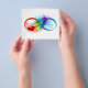 Artistically drawn infinity symbol with beautiful rainbow feather on white background. Tattoo style.