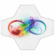 Artistically drawn infinity symbol with beautiful rainbow feather on white background. Tattoo style.