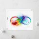 Artistically drawn infinity symbol with beautiful rainbow feather on white background. Tattoo style.