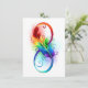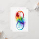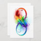 Artistically drawn infinity symbol with beautiful rainbow feather on white background. Tattoo style.