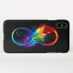 Artistically drawn infinity symbol with beautiful rainbow feather on white background. Tattoo style.