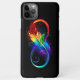 Artistically drawn infinity symbol with beautiful rainbow feather on white background. Tattoo style.
