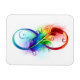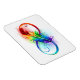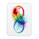 Artistically drawn infinity symbol with beautiful rainbow feather on white background. Tattoo style.