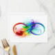 Artistically drawn infinity symbol with beautiful rainbow feather on white background. Tattoo style.