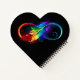 Artistically drawn infinity symbol with beautiful rainbow feather on white background. Tattoo style.