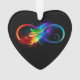 Artistically drawn infinity symbol with beautiful rainbow feather on white background. Tattoo style.