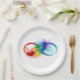 Artistically drawn infinity symbol with beautiful rainbow feather on white background. Tattoo style.