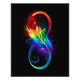 Artistically drawn infinity symbol with beautiful rainbow feather on white background. Tattoo style.