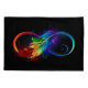 Artistically drawn infinity symbol with beautiful rainbow feather on white background. Tattoo style.