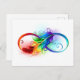 Artistically drawn infinity symbol with beautiful rainbow feather on white background. Tattoo style.