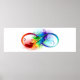 Artistically drawn infinity symbol with beautiful rainbow feather on white background. Tattoo style.